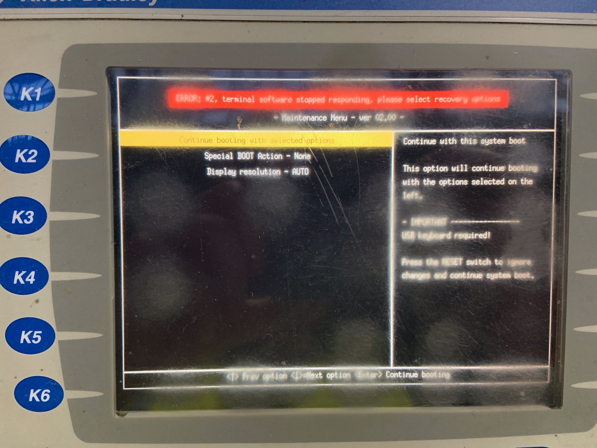 Our customer had a old PanelView 700 on a carboard bailer that was not responding. So we tried a factory reset and attempted to reflash the firmware but had no luck. In exploring the options for how to fix this situation the customer was quoted a new PanelView and the Proface Extream. The Proface was a better fit due to the tempered glass screen, the low glare high contrast, and the temperature specs. The temperature specification is what we believe was the biggest issue for the PanelView, since it was only rated down to 32F and this building was not climate controlled it could get to 0F easily. The pricing came back that we could completely redevelop the screen and replace it with the Proface at a competitive price with the PanelView.